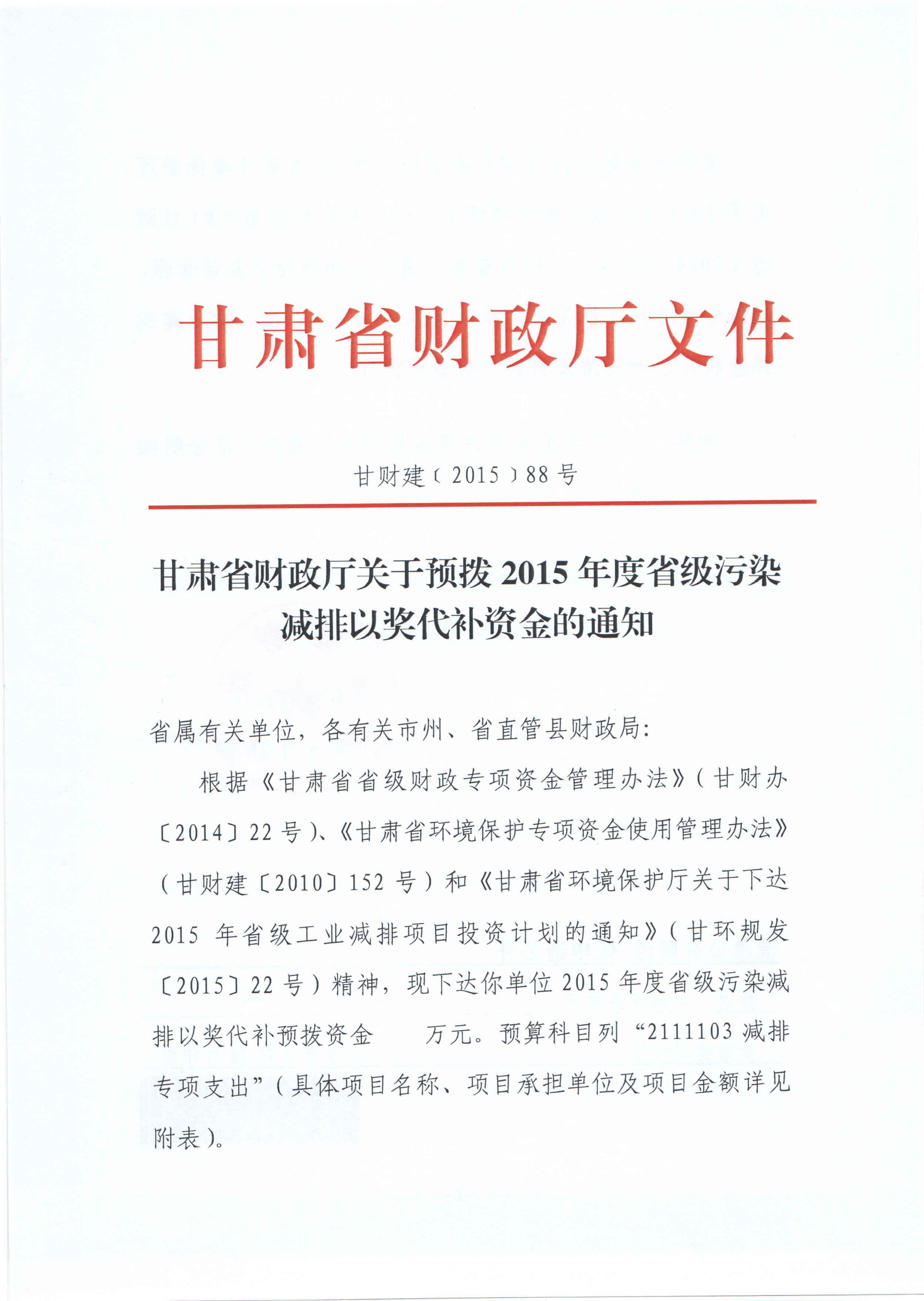 | 文号:甘财建〔2015〕88号 单位:万元 |