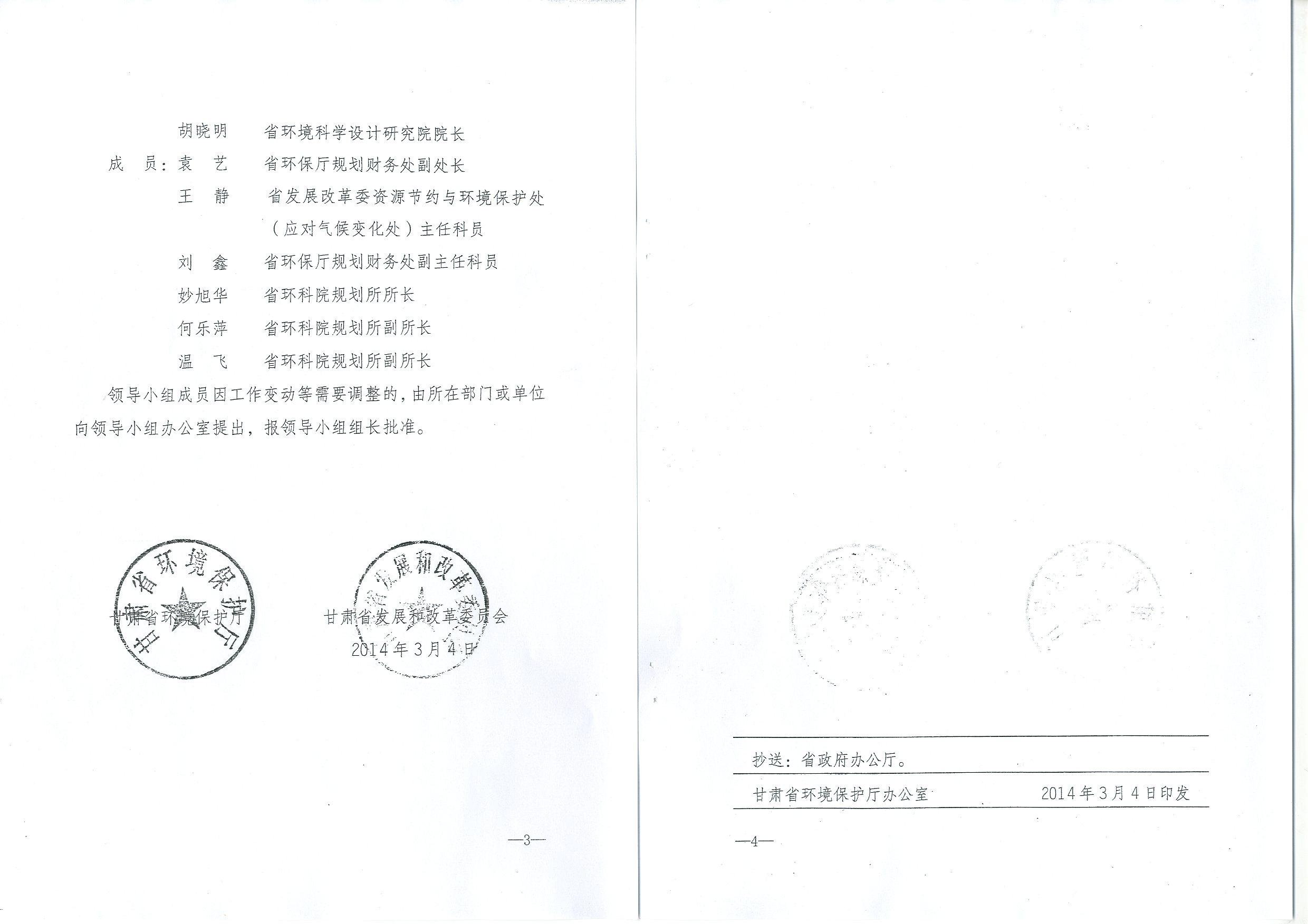 《甘肃省环境保护厅、甘肃省发展和改革委员会关于成立国家环境保护“十二五”规划中期评估工作领导小组的通知》,甘环发〔2014〕49号。