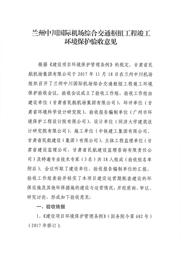 关于兰州中川国际机场综合交通枢纽工程竣工环保验收意见的公示
