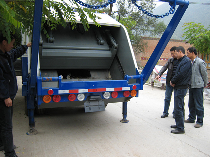 验收组查看夏河县曲奥乡香告村压缩式垃圾车运行情况