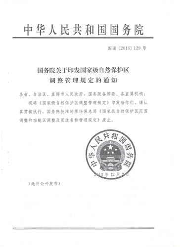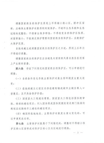 国务院关于印发国家级自然保护区调整管理规定的通知