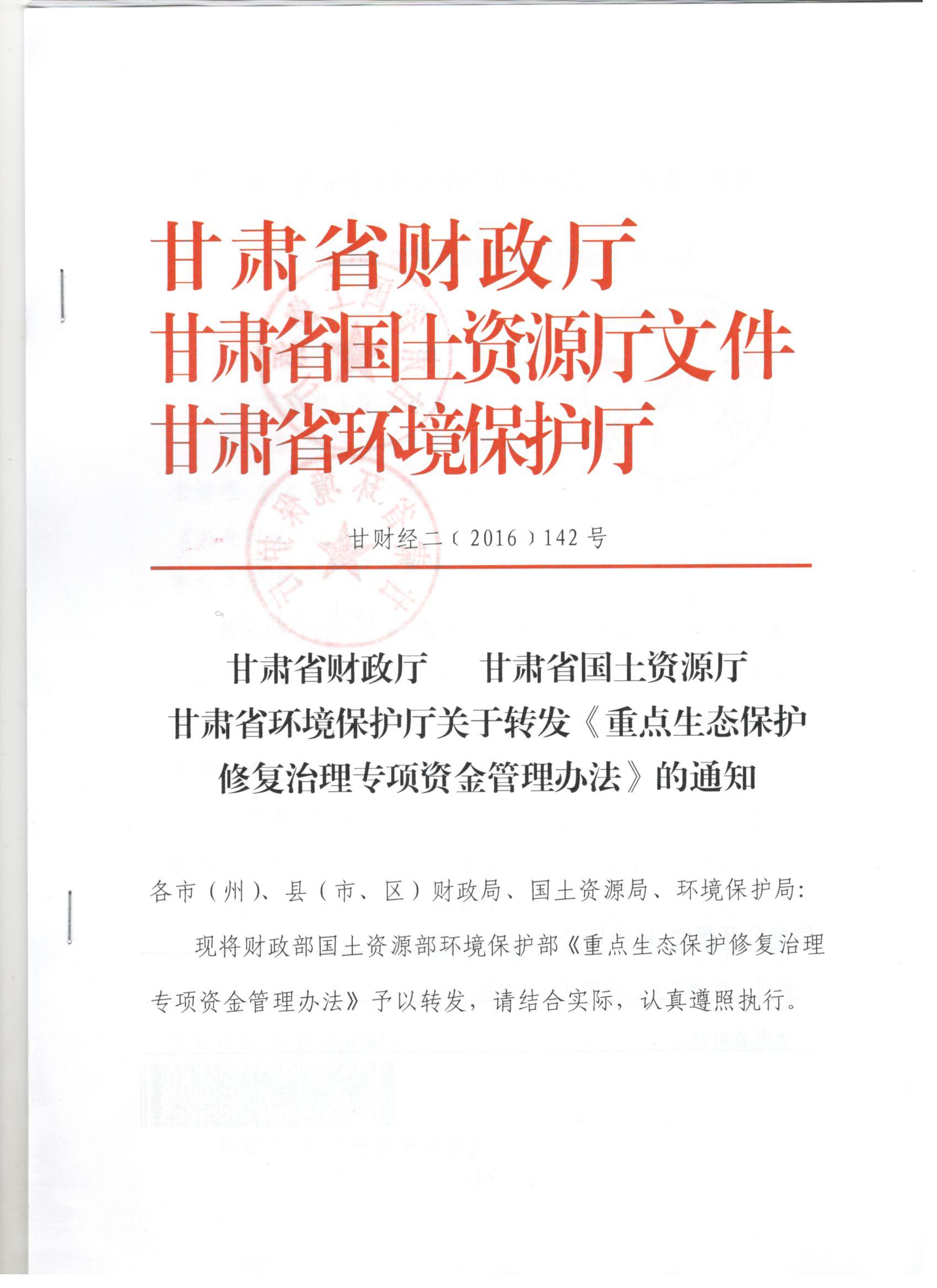 甘肃省财政厅 甘肃省国土资源厅 甘肃省环境保护厅关于转发《重点生态保护修复治理专项资金管理办法》的通知