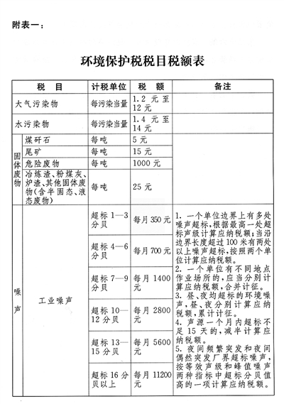 第六条环境保护税的税目、税额,依照本法所附《环境保护税税目税额表》执行。