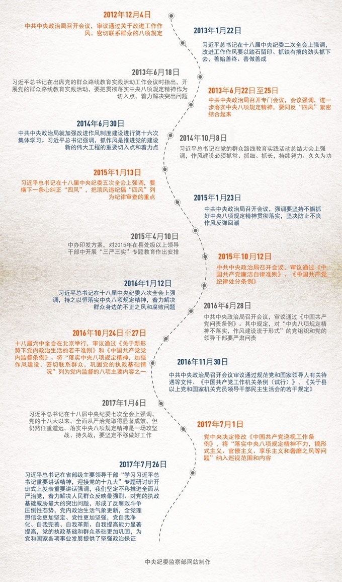 莫道征途漫漫,回首看,轻舟已过万重山。五年淬炼,短短六百余字的八项规定,成为了党内“铁规”。凡是违反中央八项规定精神的人,绝不“商量着来”,没有“情有可原”。据统计,截至2017年7月,全国累计查处违反中央八项规定精神问题18万多起,处理24万多人,平均每天超过140人。其中,省部级干部24人、厅局级干部2100多人因违反中央八项规定精神问题受到处理。