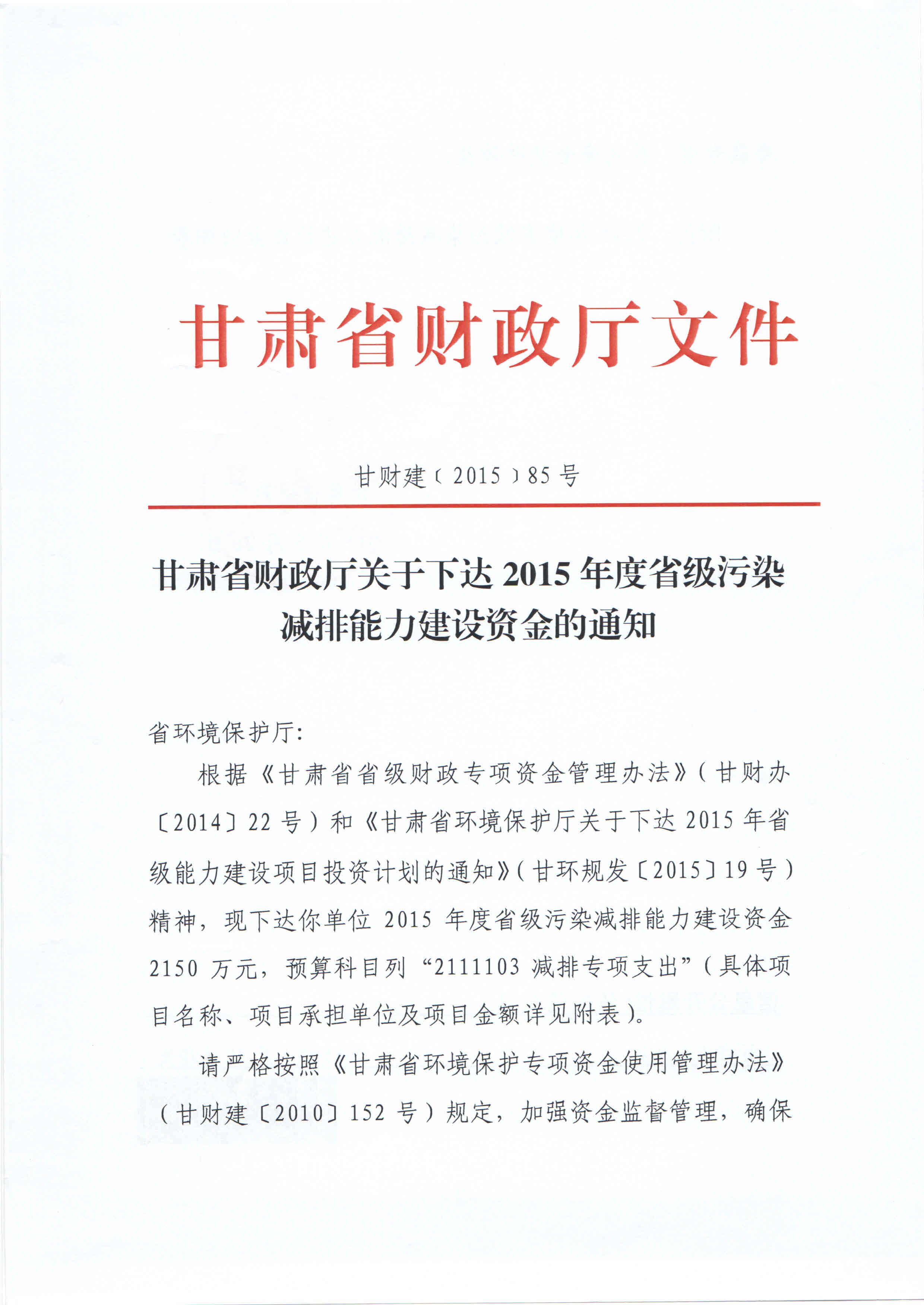 | 甘财建(2015)85号 |