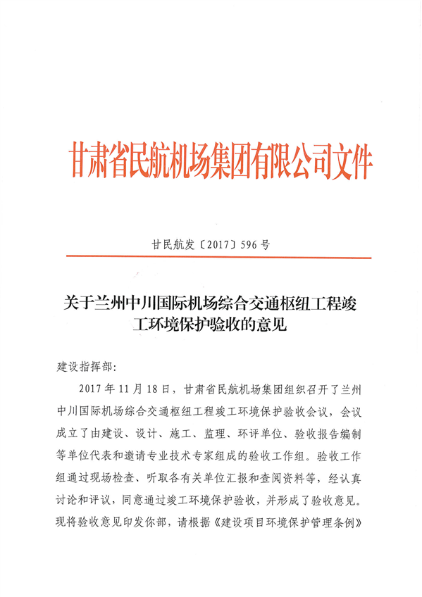 关于兰州中川国际机场综合交通枢纽工程竣工环保验收意见的公示