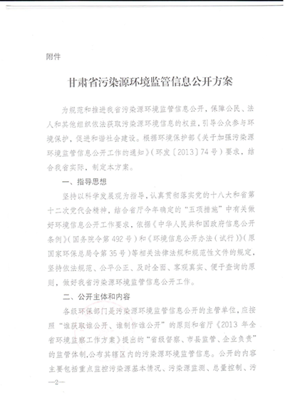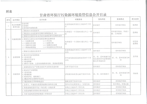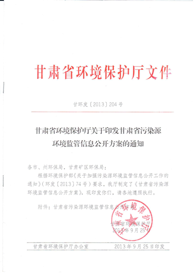 甘肃省环境保护厅关于印发甘肃省污染源环境监管信息公开方案的通知