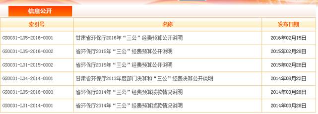 (四)推进重点领域环境信息公开。一是推进三公经费信息公开。按照“真实、完整、透明”原则,主动公开厅系统因公出国(境)费用、公务接待费、公务用车购置和运行维护费开支预算。二是每季度在《甘肃日报》、厅门户网站公布各市州空气、地表水、饮用水环境质量和国控重点企业达标率并进行排名。三是推进建设项目环境影响评价信息公开。实行环评受理、审批和验收全过程公开,将受理、审批和验收的项目全部在省环保厅网站予以公开。四是推进环境污染治理政策措施和治理效果信息公开。在省环保厅网站统一开辟甘肃省污染源环境监管信息窗口,按照重点监控污染源监督性监测结果、排污费征收、监察执法、行政处罚、环境应急等方面的环境监管信息内容公布。五是推进污染减排信息公开。继续做好重点减排工程建设和进展情况信息公开工作,对全省主要污染物排放情况信息进行了公开,并在省环保厅网站及时发布了总量减排核查结果。
