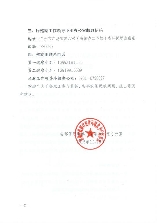 甘肃省环境保护厅第二轮党风廉政建设巡察公告