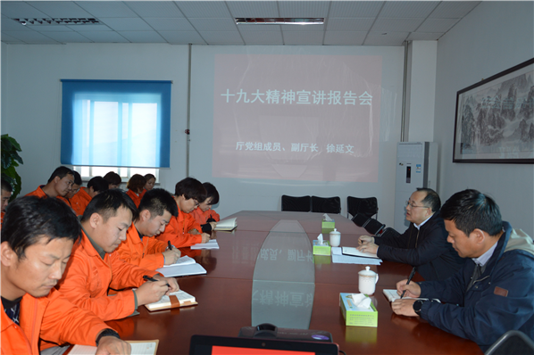 11月22日下午,省环保厅党组成员、副厅长徐延文莅临省危废处置中心为中心全体党员干部作十九大精神专题辅导报告。报告会上,徐延文副厅长从充分认识党的十九大的重大意义,全面准确学习领会党的十九大的主要精神以及关于生态文明建设和生态环境保护的决策部署等方面,对十九大精神作了系统透彻、深入浅出的阐释和解读,并就省直部门管理企业改制脱钩各项工作作出指示。