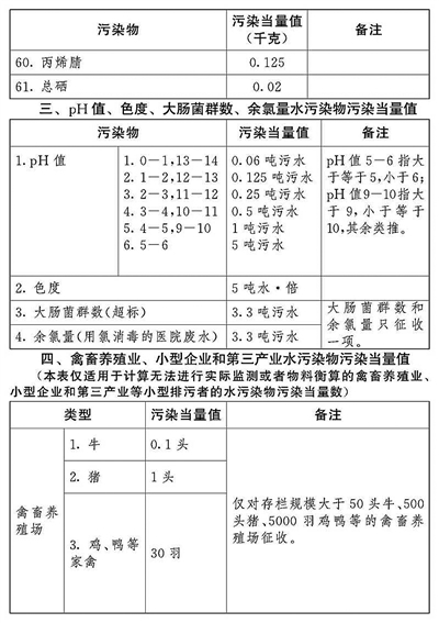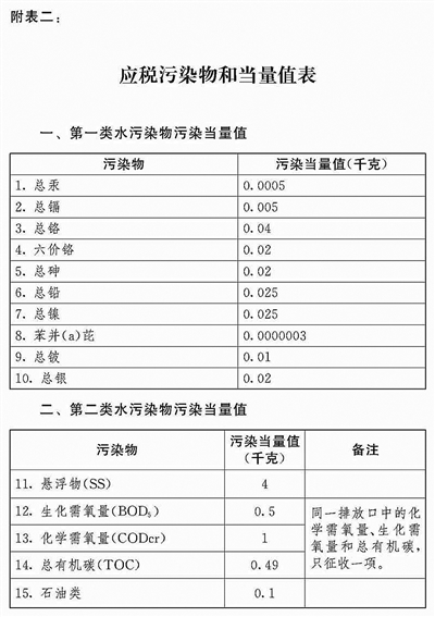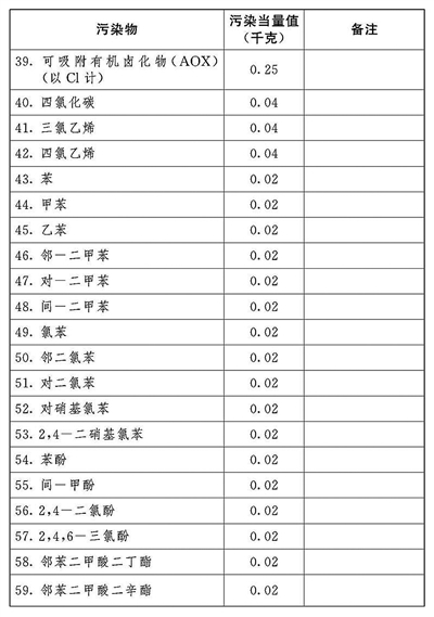 (二)应税水污染物按照污染物排放量折合的污染当量数确定;