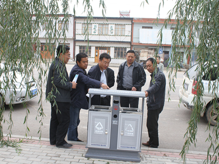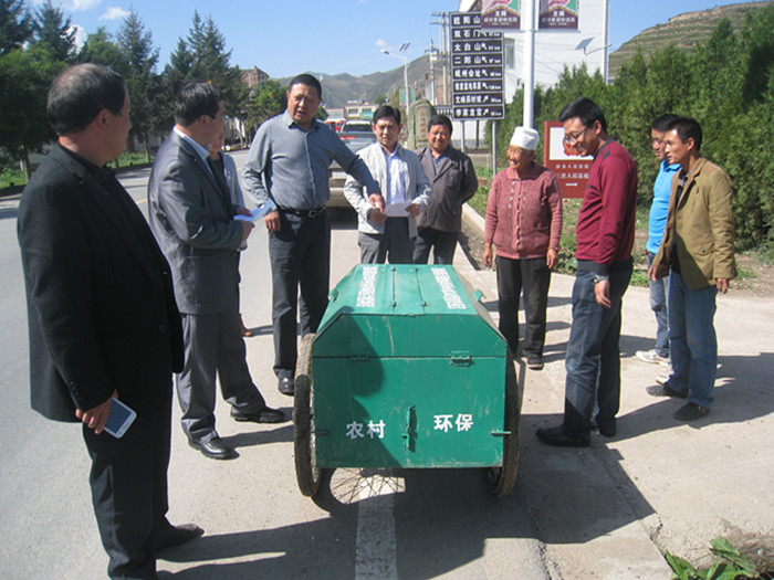 查看安定区巉口镇冯家岔村分类式垃圾箱管护情况